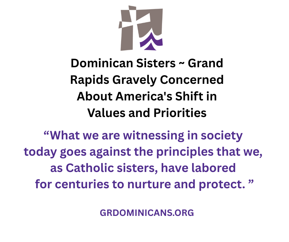 The Congregation of the Dominican Sisters ~ Grand Rapids joins the Leadership Conference of Women Religious (LCWR) and 35,000 women religious in the United States in voicing our grave concern about shifts in United States and global values and priorities.