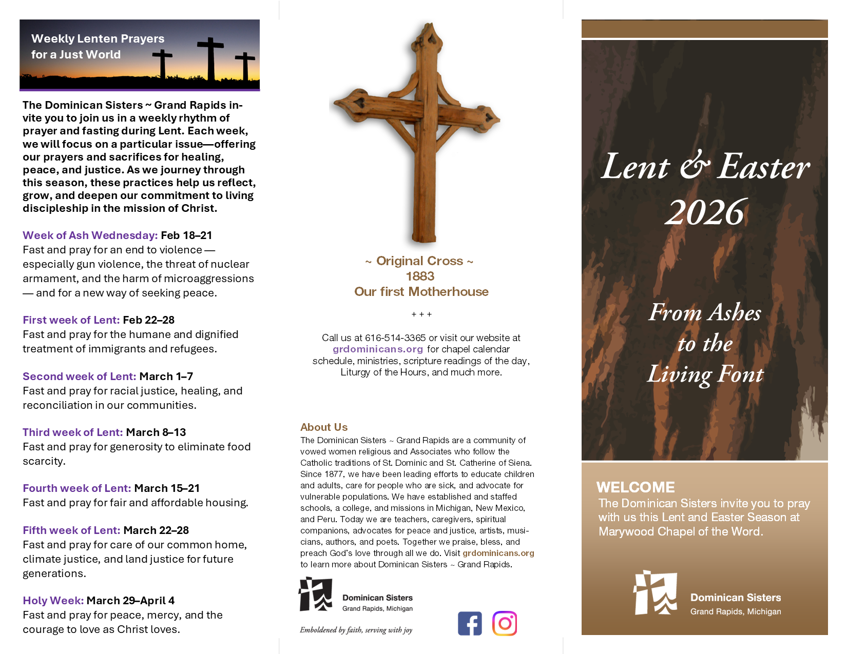 The Dominican Sisters~Grand Rapids invite you to pray with us this Lent & Easter season on Marywood Campus in Grand Rapids, Michigan.